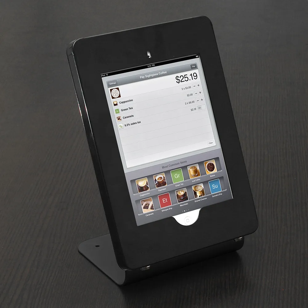 - Secure tablet mount is a countertop unit that attaches to your tabletop to help prevent theft