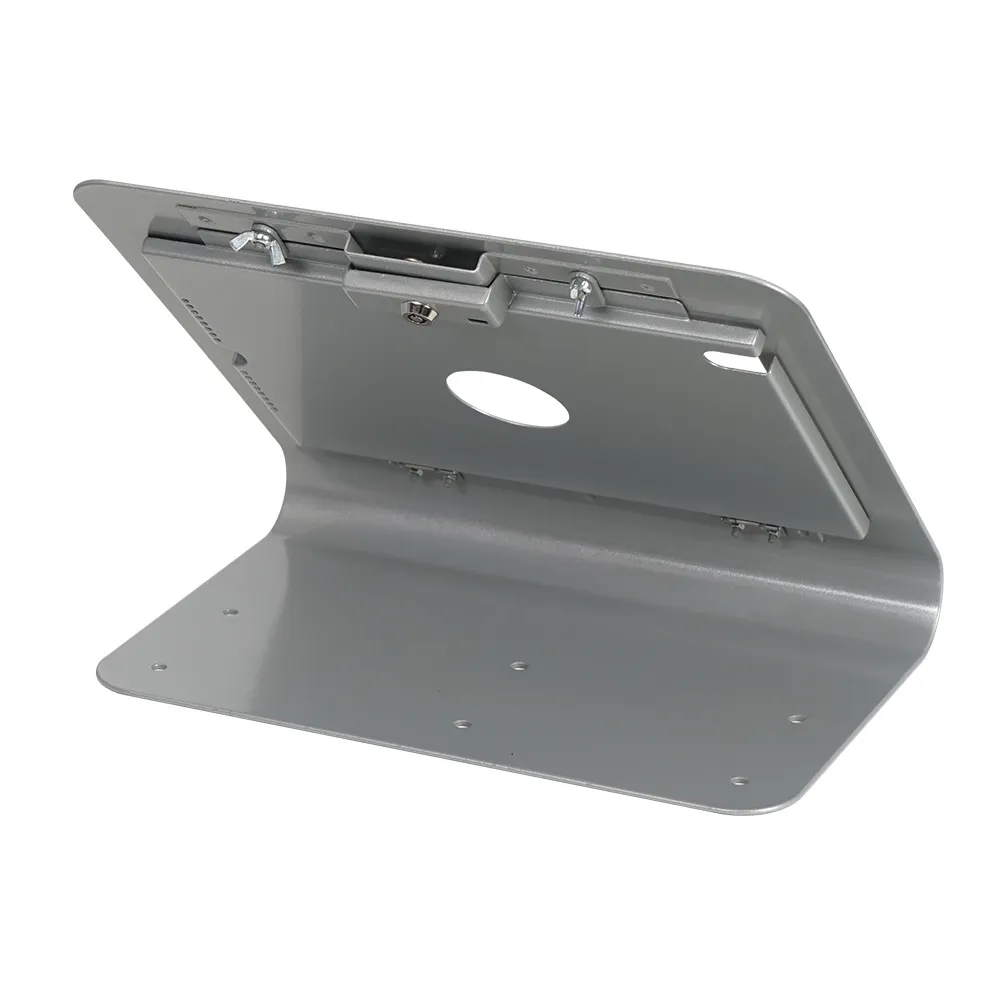 The retail tablet stand, like many secure iPad holders, is a locking display that helps prevent theft in public areas to provide peace of mind. There is a slot to attach a locking cable as well to secure the entire mount in your business. The home button of the iPad is covered as well to prevent unwanted access to other Apps and settings of the device, keeping users on the interface you have provided them access to. This holder is great as a POS display in retail stores, advertising sales & promotions in shops, a self-service check-in at offices and events, and so much more.