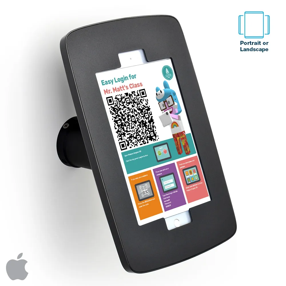 This iPad 10.9 wall mount is great for uses in different locations, whether checking in guests as a self-serve kiosk or displaying promotions and advertising in stores! The iPad holder is designed to hold different generations of tablets, with two face plates included that are interchangeable depending on your size. One face plate is designed for iPad 10th generation and the 4th and 5th generations of iPad Air which are 10.9”, as well as 11" iPad Pro. The other faceplate is for Apple® iPad 10.2” and 10.5” models which includes the 7th, 8th, and 9th generation as well as Air 3 in addition to iPad Pro 10.5”. Both options leave the front camera and home button exposed, allowing additional access to the tablet providing additional interactivity!