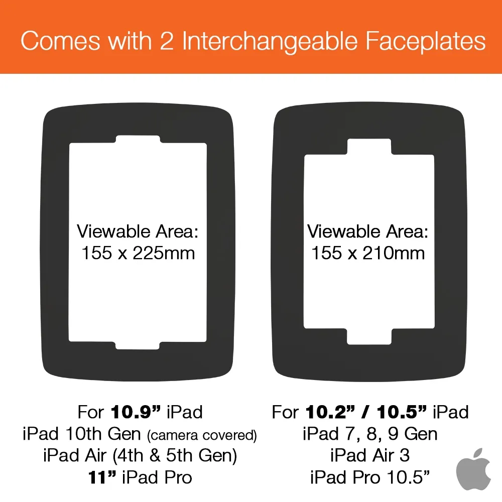 - iPad 10.2 Wall mount includes 2 faceplates designed for use with: