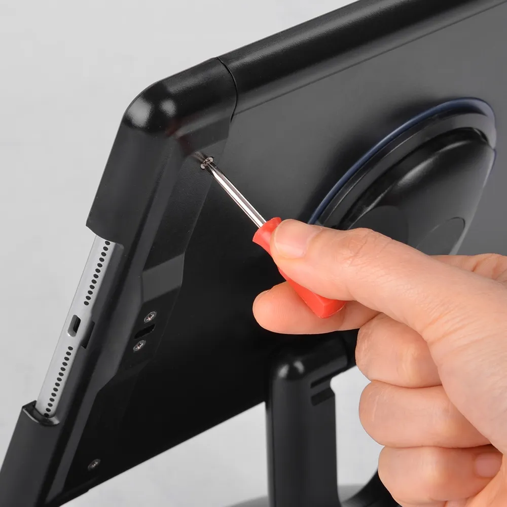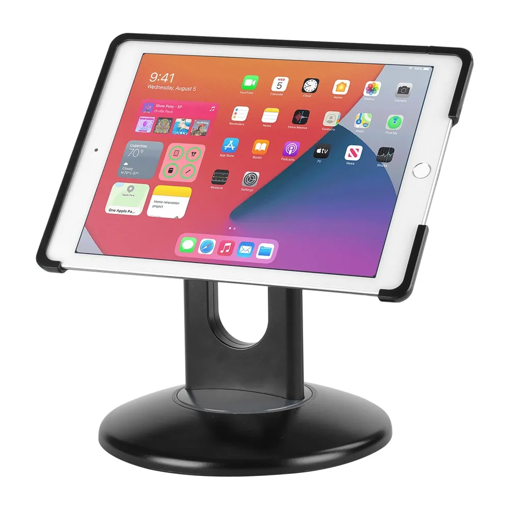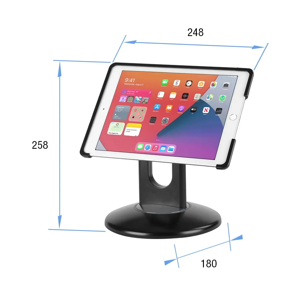 The mount has a fully rotatable design, displaying iPads in portrait or landscape orientation in seconds. The holder also allows it to be flipped between front and back for different people to use in on either side of table, counter, or other POS position. This display is designed for Apple® iPad 7th (2019), 8th (2020), & 9th (2021) generations. This tablet display is made from black plastic for a durable bracket that is able to be used for years to come in any environment. This display is great for use in retail stores, cafes, pubs, and more. Order for your business today!