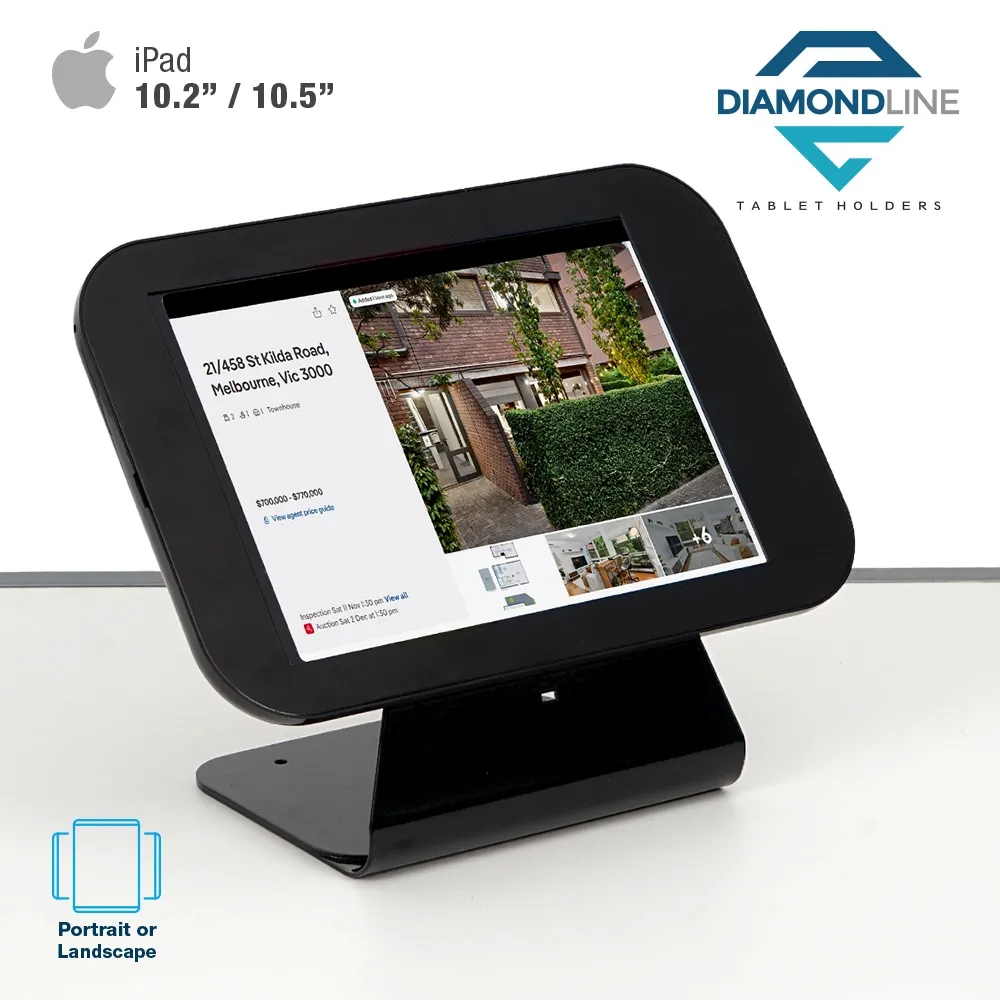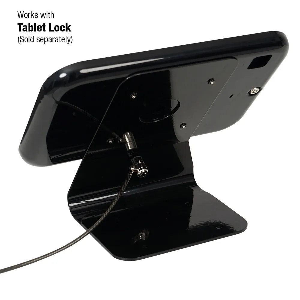 The wall iPad holder, like other aluminum tablet displays, are versatile units that can be installed on both walls and countertops. When placed on countertops the displays are able to be oriented in landscape or portrait orientation, however the tablet is only able to be displayed in landscape format when installed on a wall. This display is designed to hold Apple iPad 10.2”, which includes iPad 2019 (7th generation), 2020 (8th generation), and 2021 (9th generation). There's a Kensington lock slot on the rear of the mount to allow a cable lock, sold separately, to be added to the fixture as an additional security measure.