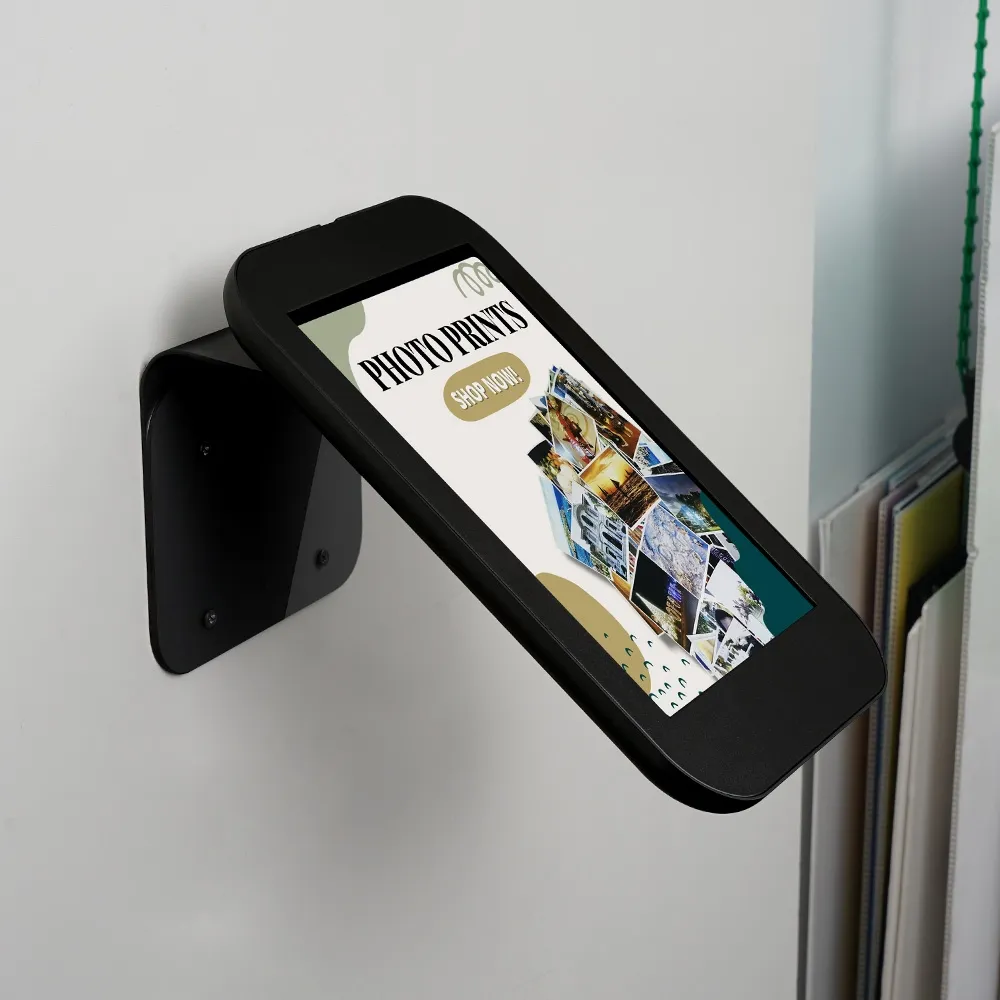 - Device displays in landscape format on walls & portrait or landscape on counter tops