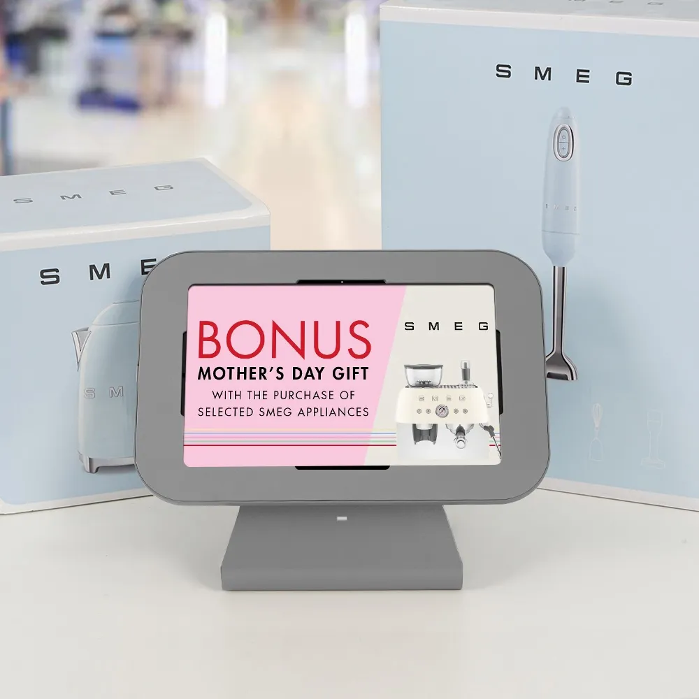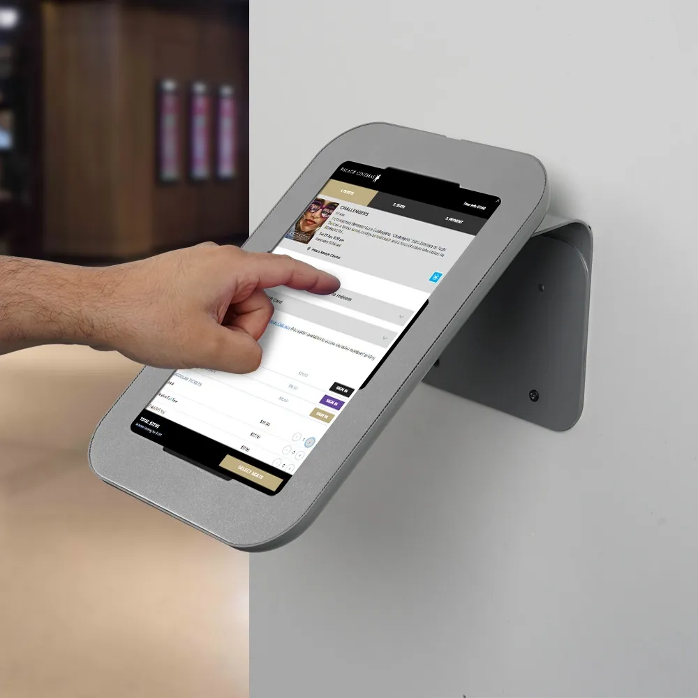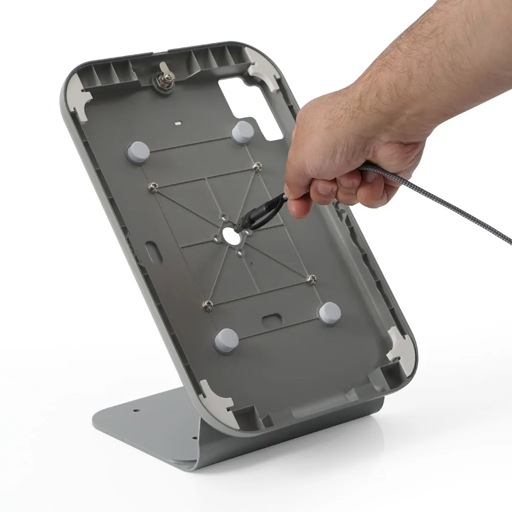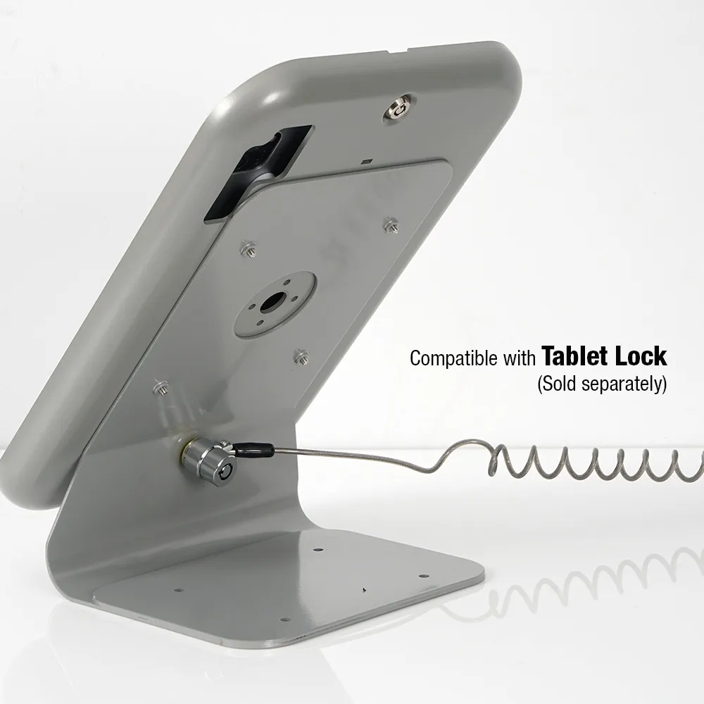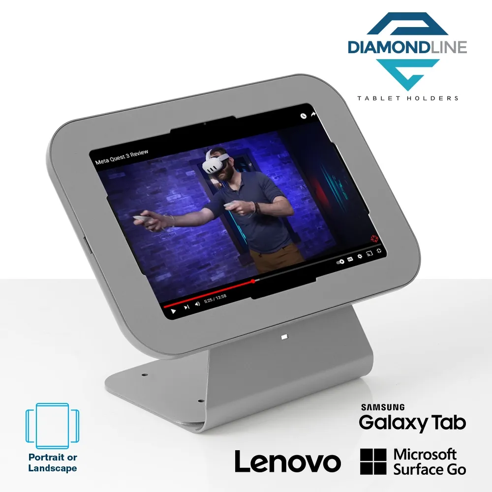 A tablet wall hanger is used in retail stores, restaurants, cafes, waiting rooms, art galleries, museums, shopping centres, and more to offer visitors an interactive device that is easy to use. This mount is designed for use with many non-iPad devices, including most Samsung Galaxy, Lenovo, and Microsoft Surface Go tablet models. Each device can be mounted in portrait or landscape orientation depending on need to ensure compatibility with whatever App you are running. The camera is exposed to allow for additional interactivity as well as facial ID if needed!