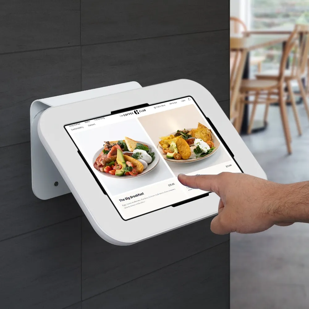 This tablet wall holder allows visitors at your location to easily check-in, order food or drinks, view information, and otherwise have an interactive experience that improves their visit to your business. The mount allows devices to be put in portrait or landscape orientation depending on your need, ensuring your App will be viewed in the appropriate resolution. This bracket is designed for many non-iPad devices, including most Samsung Galaxy, Lenovo, and Microsoft Surface Go tablet models. The camera is exposed on all device types to allow for facial ID or other interactions.