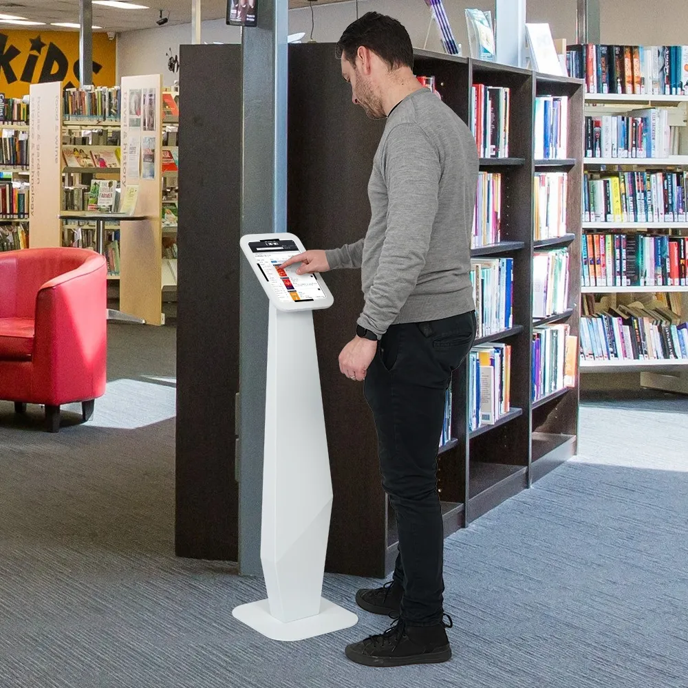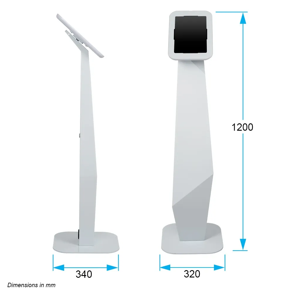 - Tablet floor mount is 1200mm tall with unique geometric design