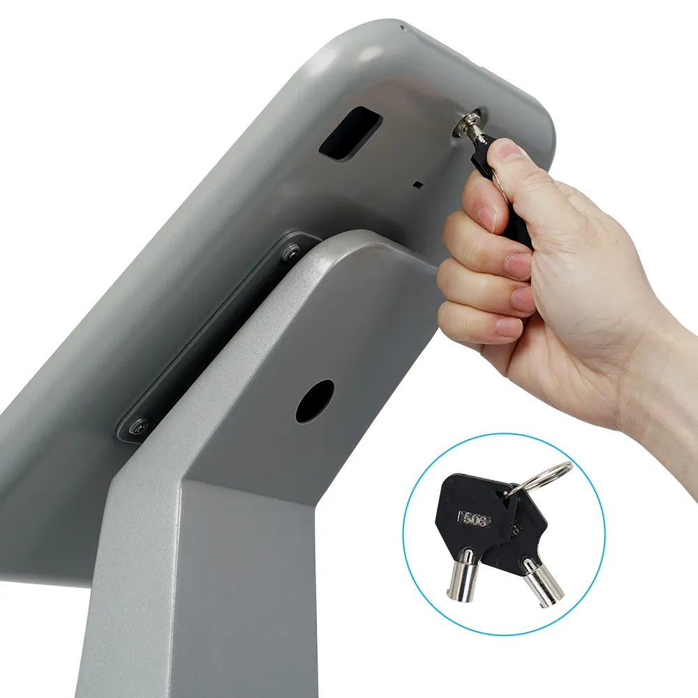 - Lockable display keeps tablet secure to allow for safe use in public areas