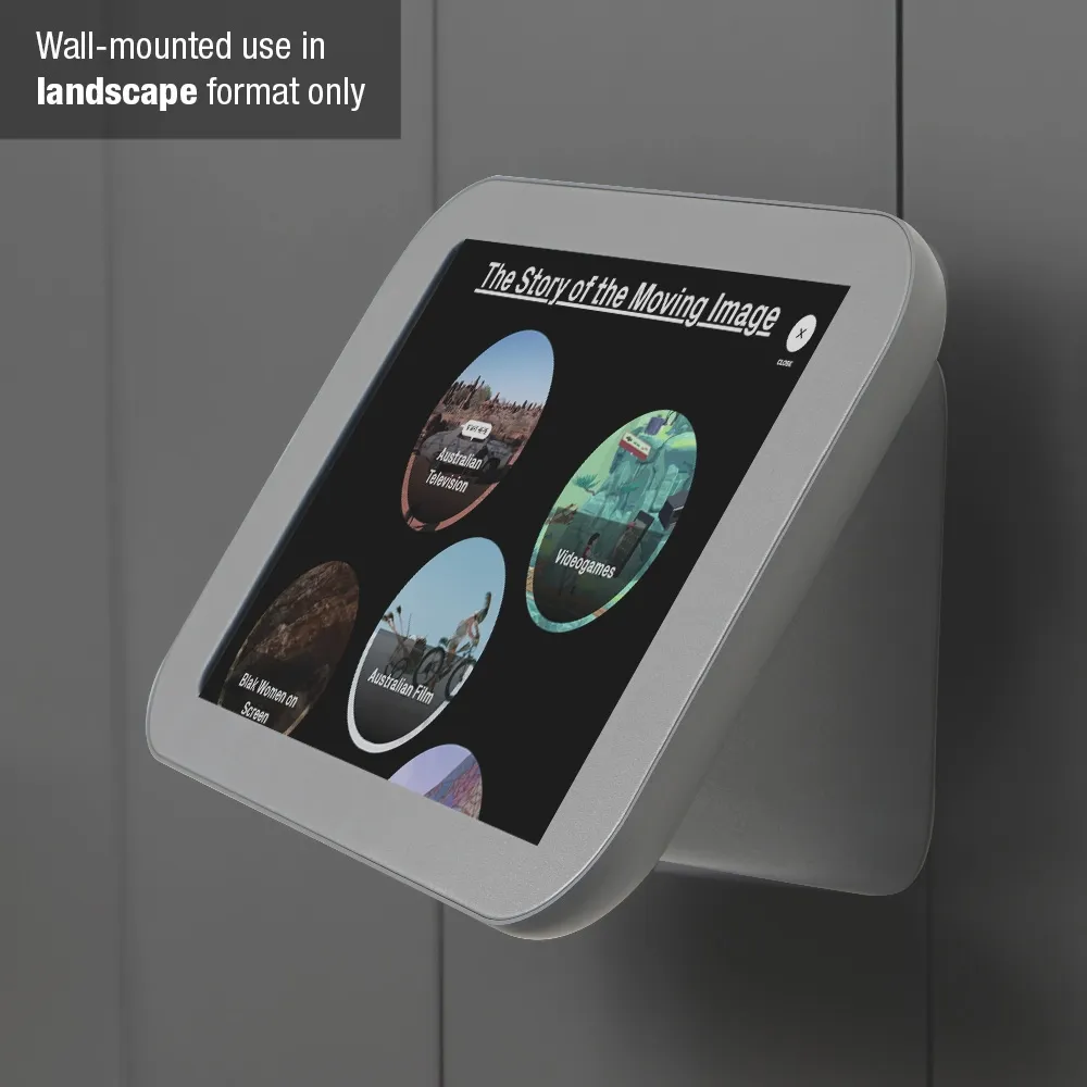 - Wall holders for iPad mount in landscape format on walls or portrait/landscape orientation on counters