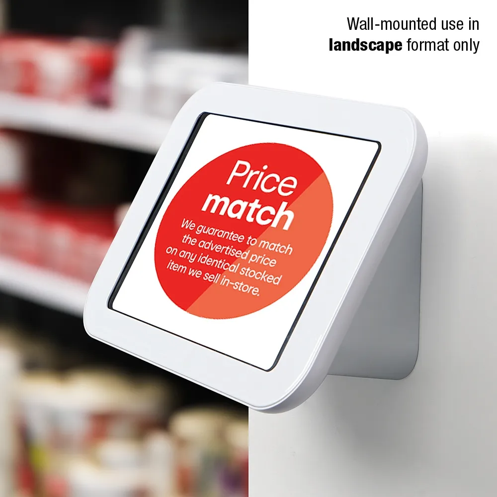 • Displays in landscape format on walls & portrait or landscape on counter tops