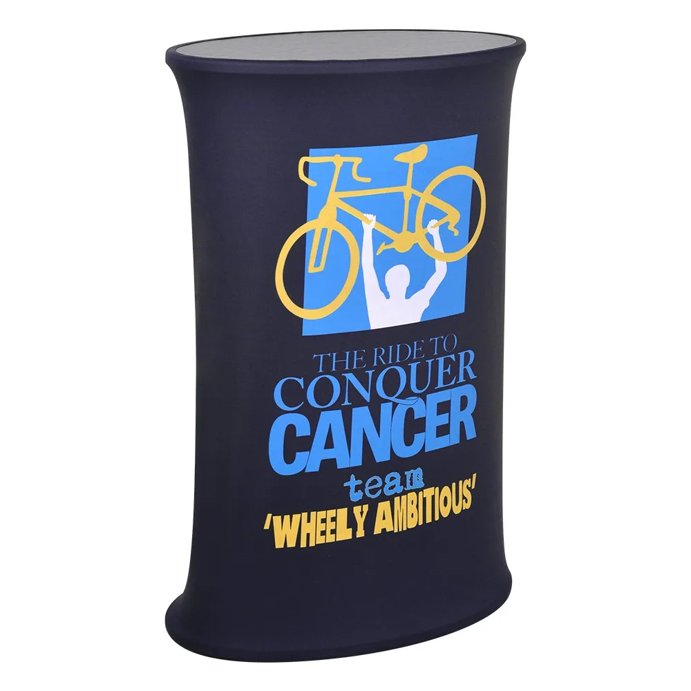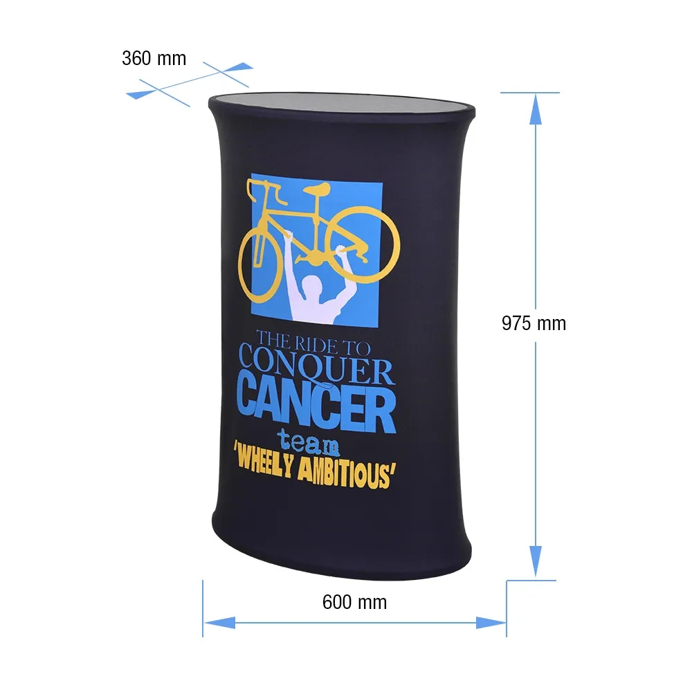 The pop up counter, like exhibition displays and a portable trade show stand, features your custom designs on a flame retardant polyester fabric wrap. Your graphics are digitally printed using a dye-sublimation process that helps to ensure a true representation of your designs in vivid full colour. The wrap is made from stretch material to hug the frame tightly for a stylish design as well. Repeated use of the display is easy as well, since you can clean the fabric to keep it looking fresh, and the carrying bag helps to prevent grime or dust from gathering!