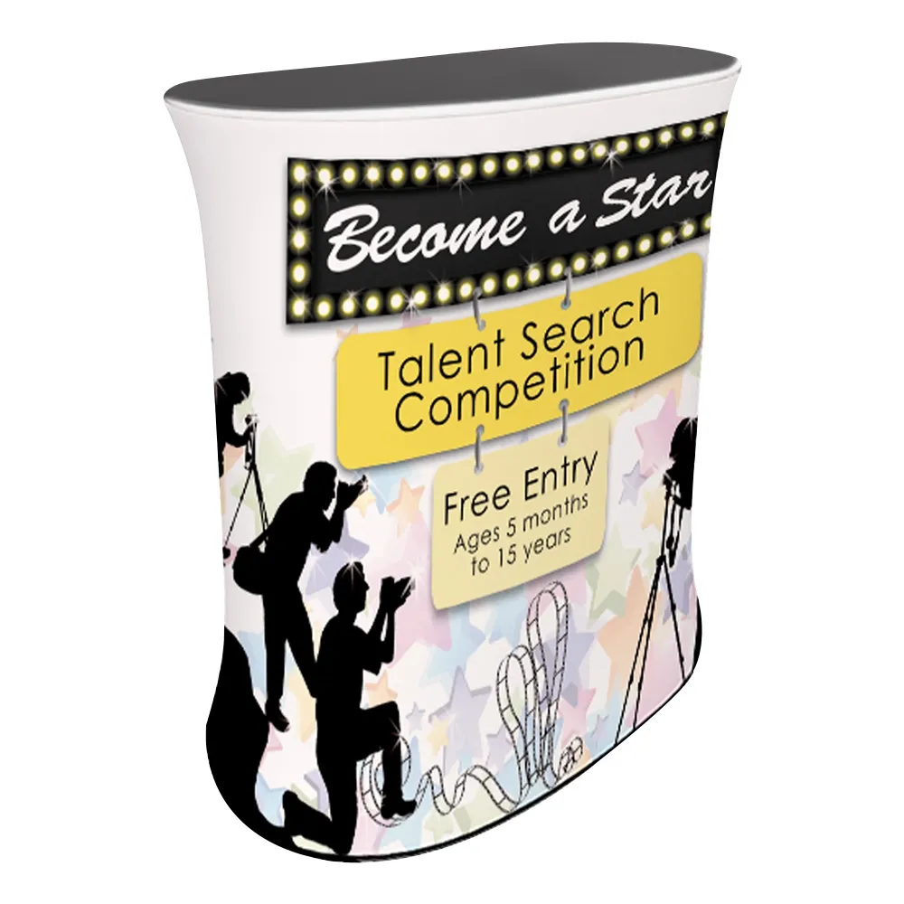 This pop up counter display is great for use as a greeting counter or displaying merchandise and information at different locations such as trade shows, exhibition halls, retail stores, travel agencies, transit stations, shopping centres, and car dealerships. The trade show fabric counters are digitally printed with your custom graphics using a dye-sublimation process that ensures your designs are represented correctly and in vivid full colour as well!