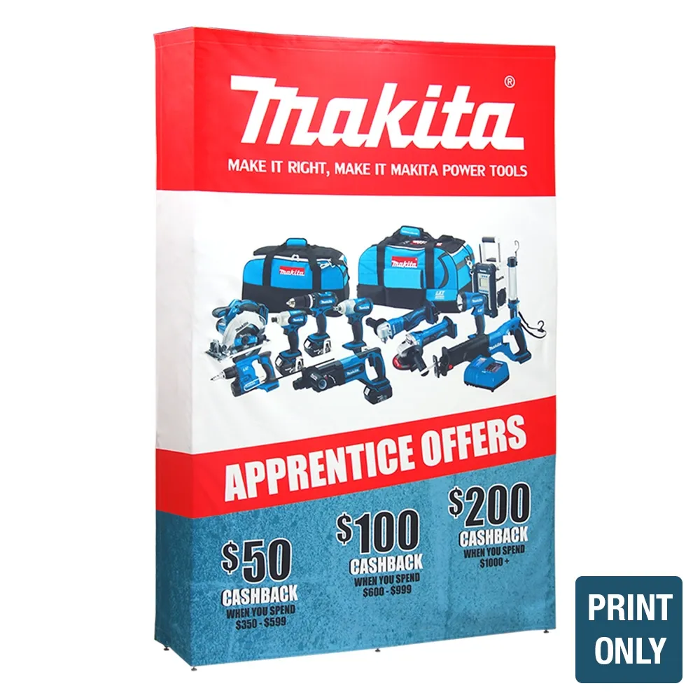 - 2.2 x 1.5m graphic includes endcaps for the sides to obscure the frame for a better appearance
