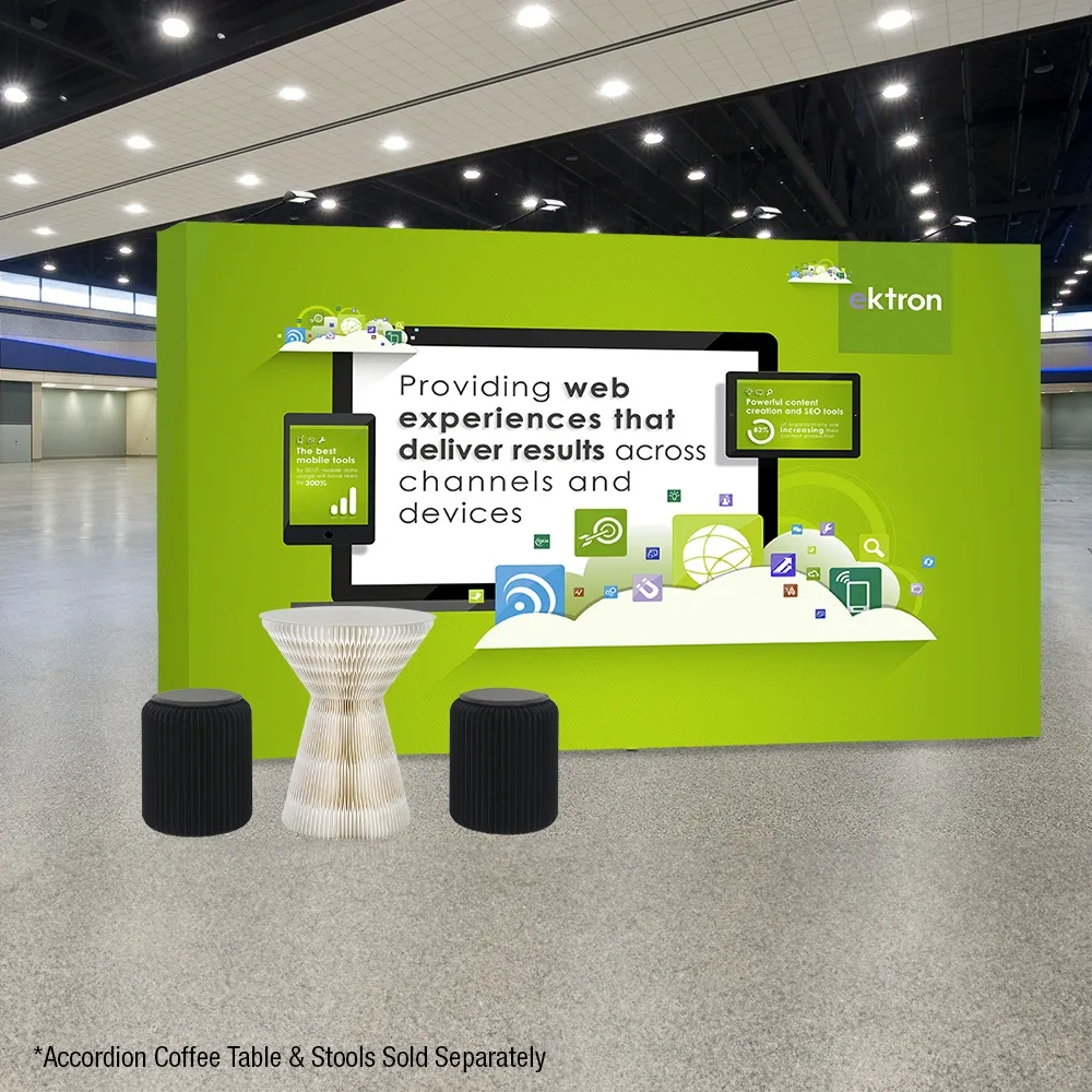 - Fabric display sets up quickly without any tools required in less than 5 minutes