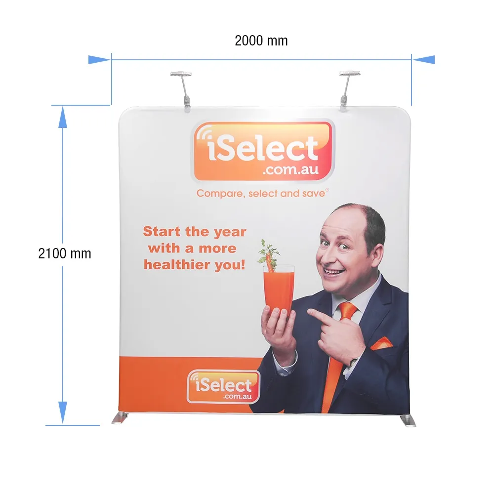 - Backdrop banner is 2.1 x 2m, a perfect addition to trade show booths & events