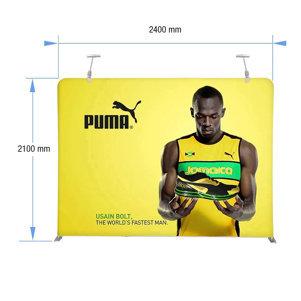 • Pop up backdrop stand is 2.1 x 2.4m, a perfect addition to trade show booths & events