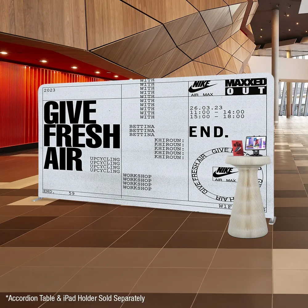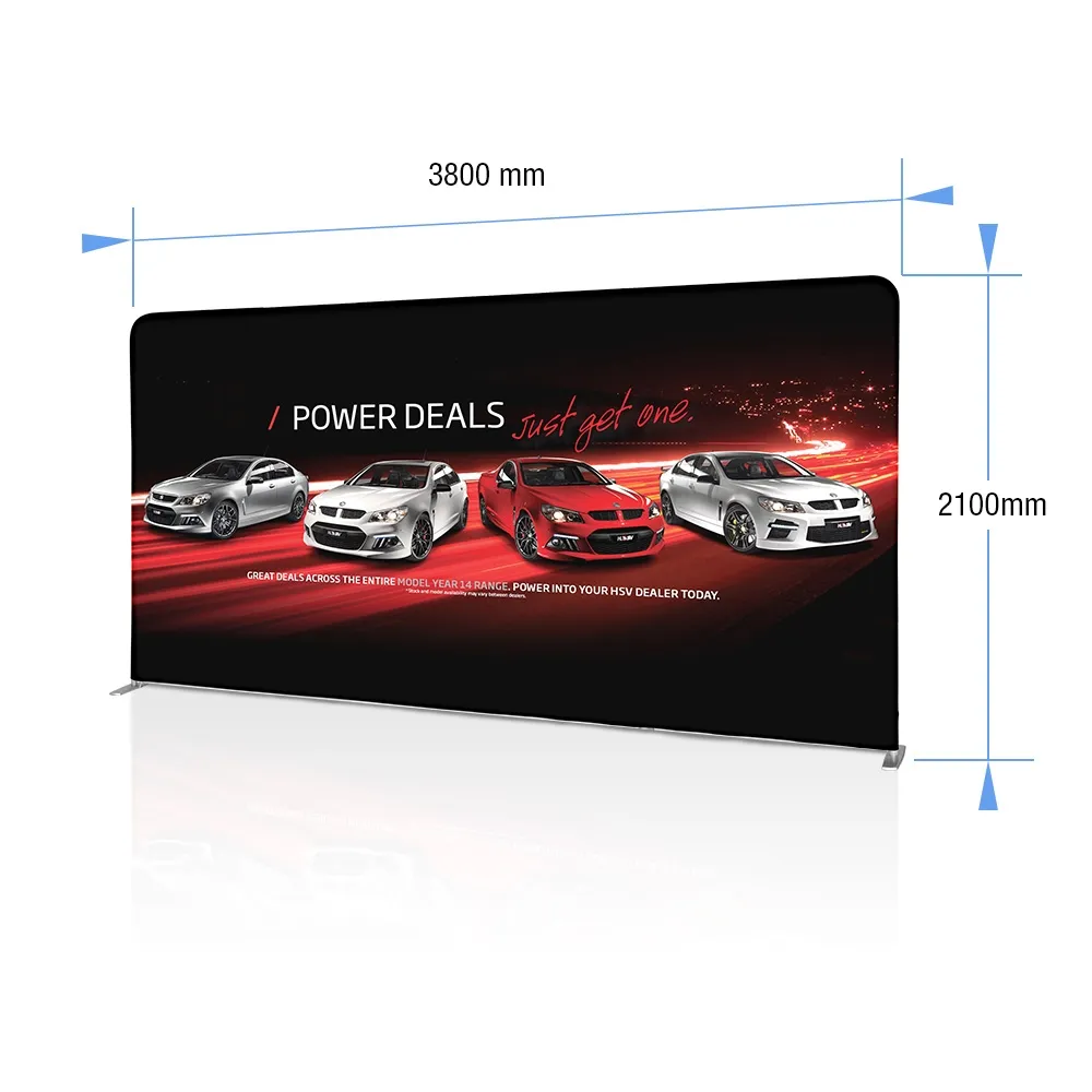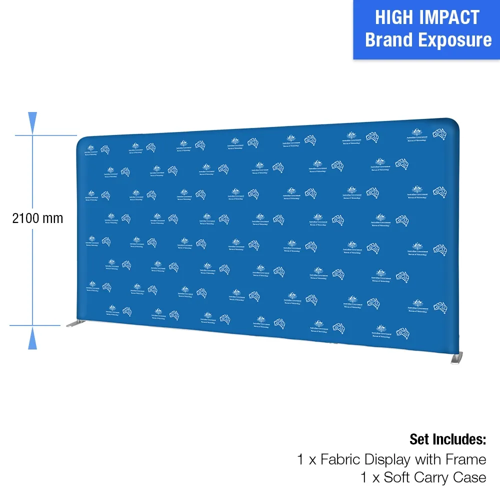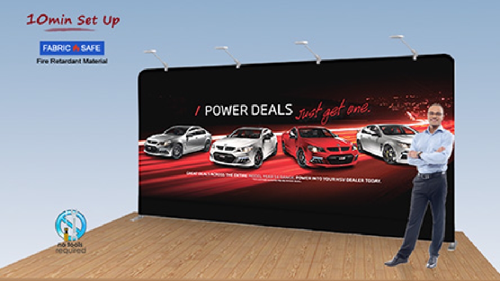 This display trade show, like exhibition pop up displays or custom booth stands, is a wide display that is ideal for use as a backdrop at different events. Your custom designs are digitally printed using dye-sublimation onto machine washable polyester fabric, offering a vivid depiction of your graphics in full colour. The fabric is also flame retardant for added safety.