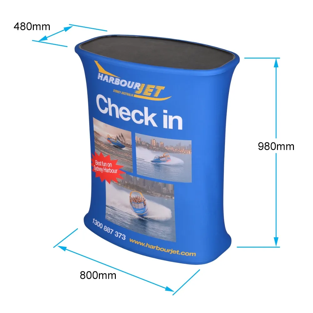 • Digitally printed wraps on backdrop & counter have full, vivid colour due to dye-sublimation