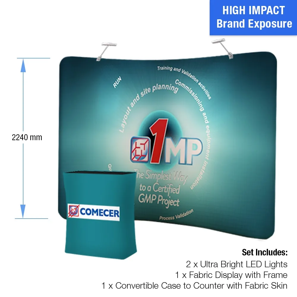 These trade show displays make a great addition to your companies expo, exhibition hall, retail store, or shopping centre marketing effort. The portable pop up booths are easily brought to and from events using the (2) included carrying bags to bring all components. Assembly of the popup display takes less than 10 minutes without any additional tools required. The lightweight aluminium frame has a curved design that helps to draw passersby in as well!