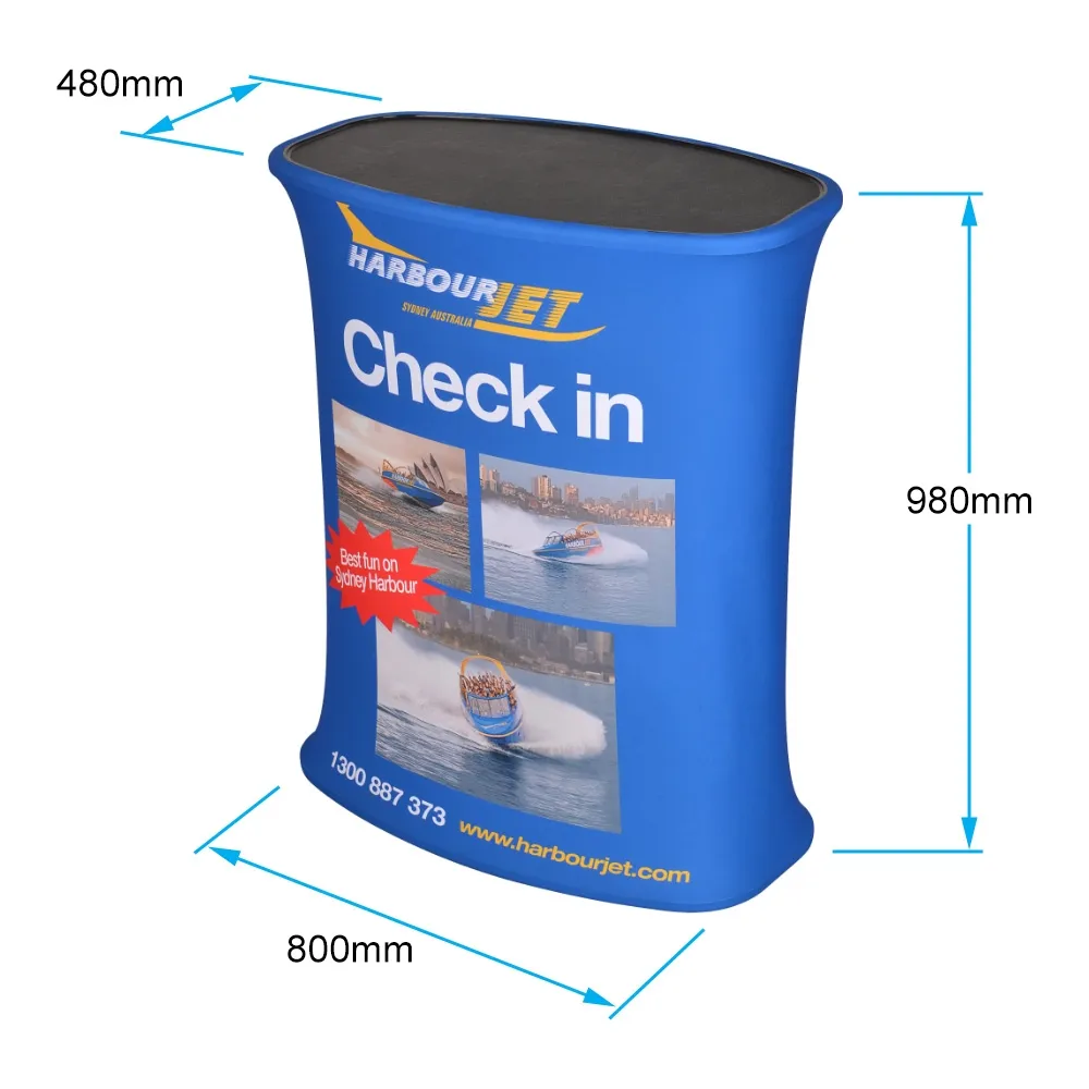 Looking for pop up displays that really get customers into your booth? These trade show popup stands use your custom graphics to make your brand name, logo, and other information readily visible for potential clients. Printing is digitally completed using dye-sublimation, a method that ensures vivid colours that won't fade over time. Both the popup backdrop and portable exhibition counter use this fabric wrap so that your area at shopping centres, retail stores expos, exhibition halls, and other events coordinate smoothly for a professional look.