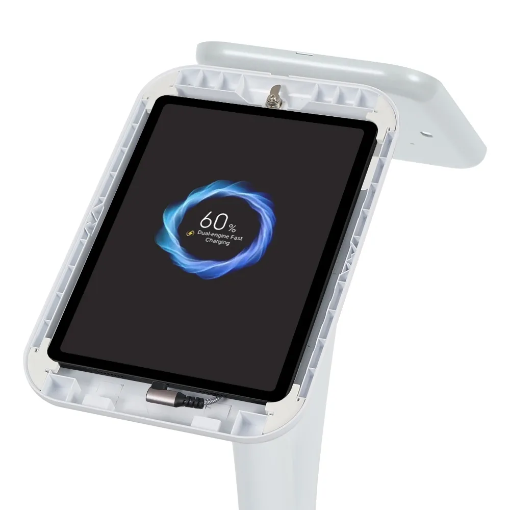 - Dual-sided design allows multiple people to interact with tablets at once