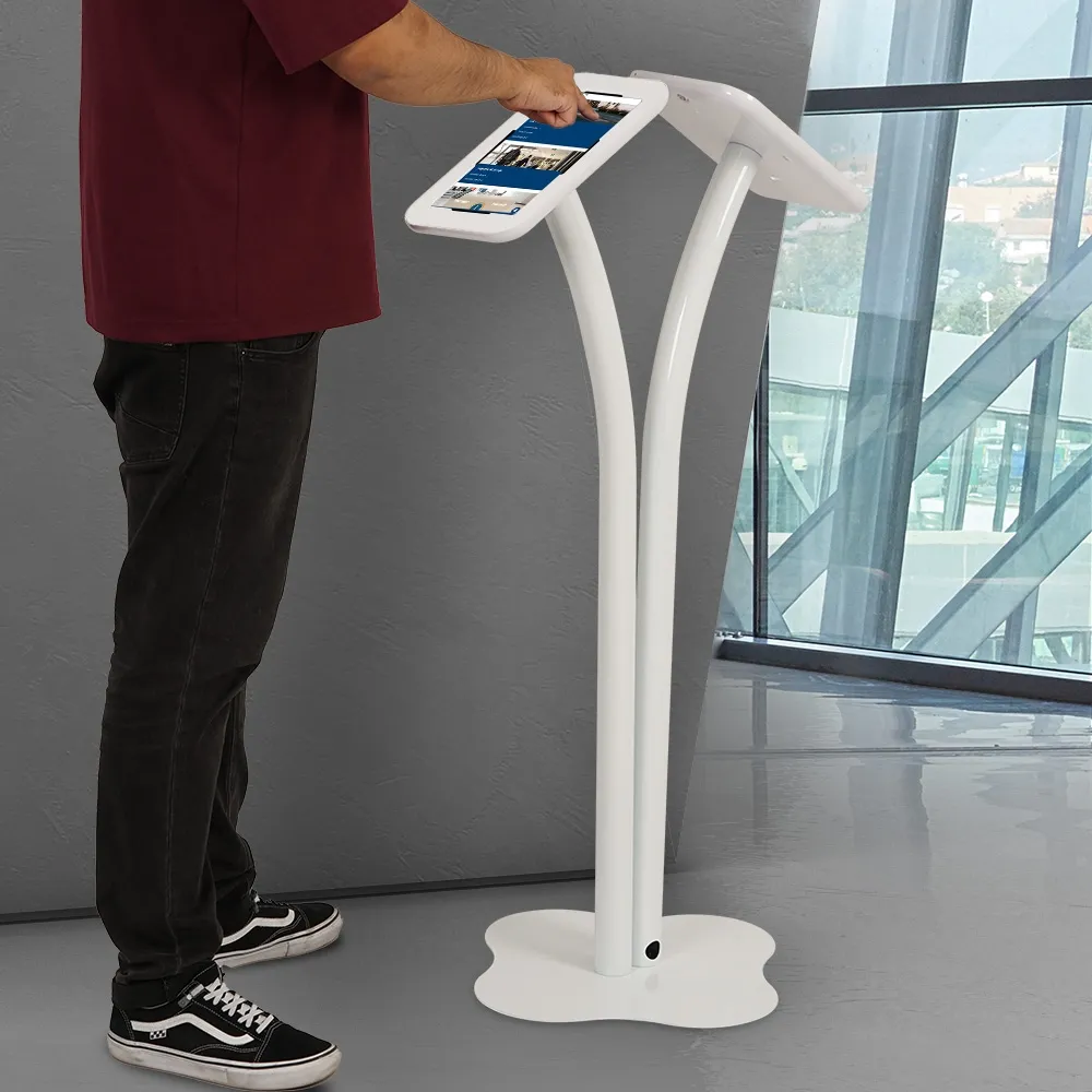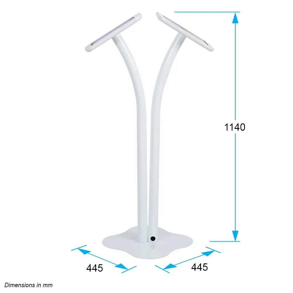 - Tablet floor stand holder is 1140mm tall with curved center poles for each mount