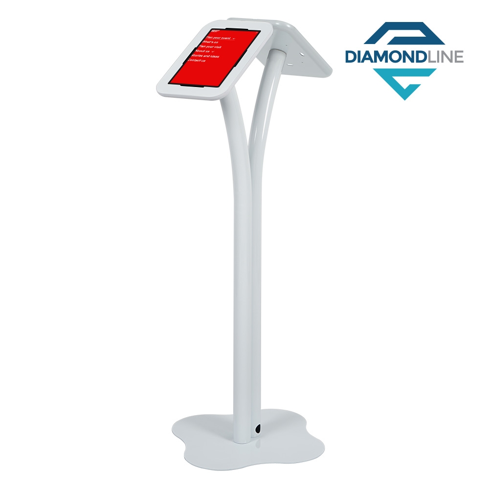 This freestanding tablet display, tablet floor stand holder features a dual sided design to take up less floor space while still allowing multiple people to use the devices. Each mount is atop a curved pole to angle the tablets for easy use by all. The display is 1140mm tall and features internal cable management for a professional appearance for use in all settings. The lockable display keeps your devices secure whilst in use, with a Kensington lock slot on the back if an additional cable lock is needed.