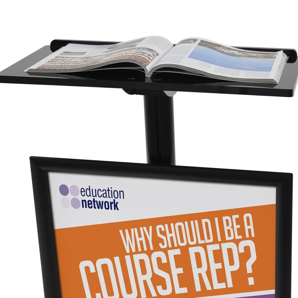 - Black lectern includes A2 (594 x 420mm) clip frame for promotional signage!