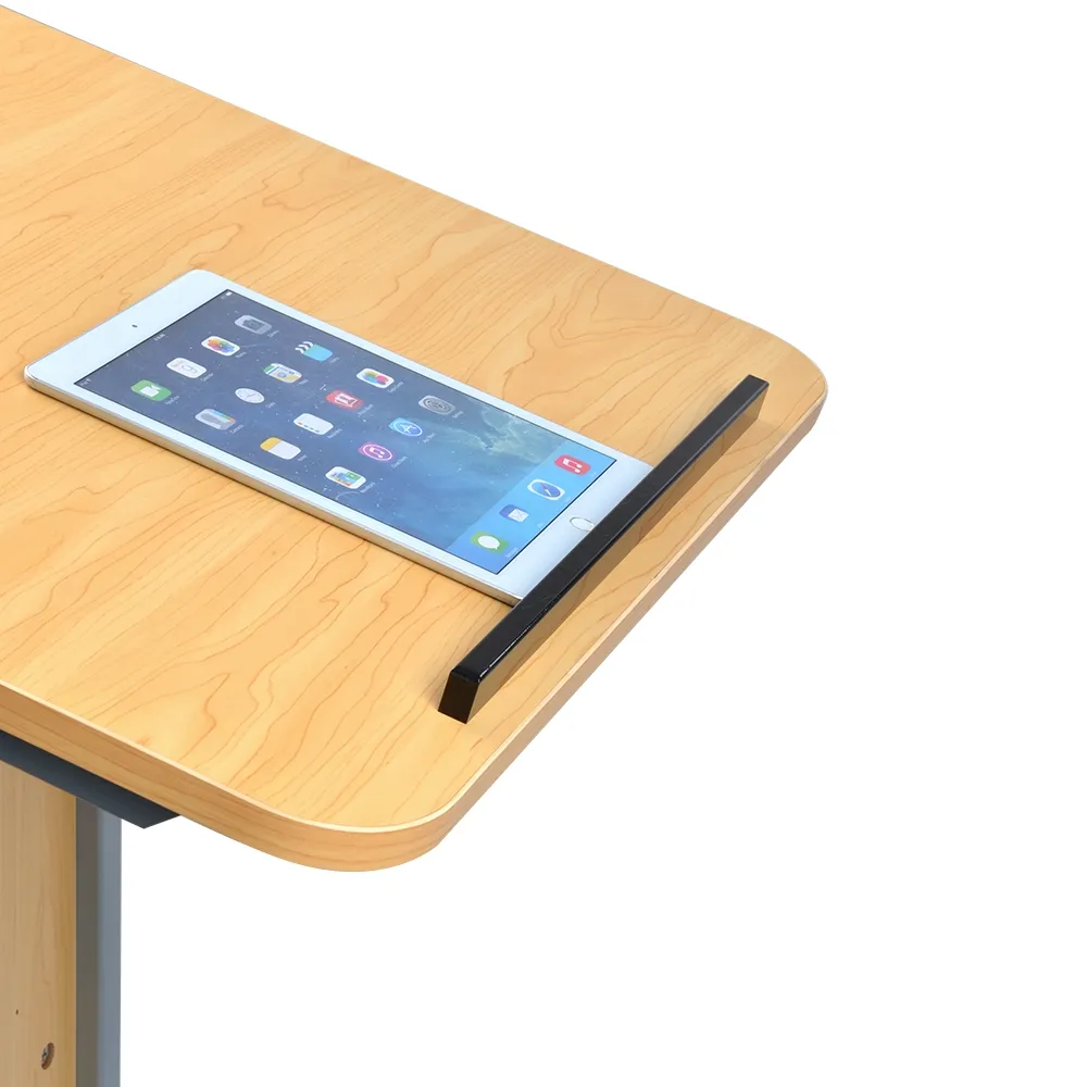 • Silver powder coated steel frame complements laminated MDF with maple finish
