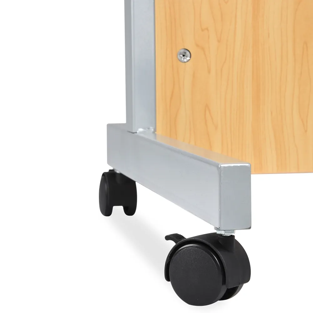 The base and frame of the podium are made from powder coated steel with a silver finish that complements the maple finish laminated MDF that make up the rest of the stand. MDF provides a durable and affordable display that looks great at a fraction of the price of other styles of lecture stands. This display is shipped knocked down for lower shipping costs and is easily assembled in minutes using simple tools. Buy from Slimline Warehouse today to receive fast despatch to anywhere in Australia!