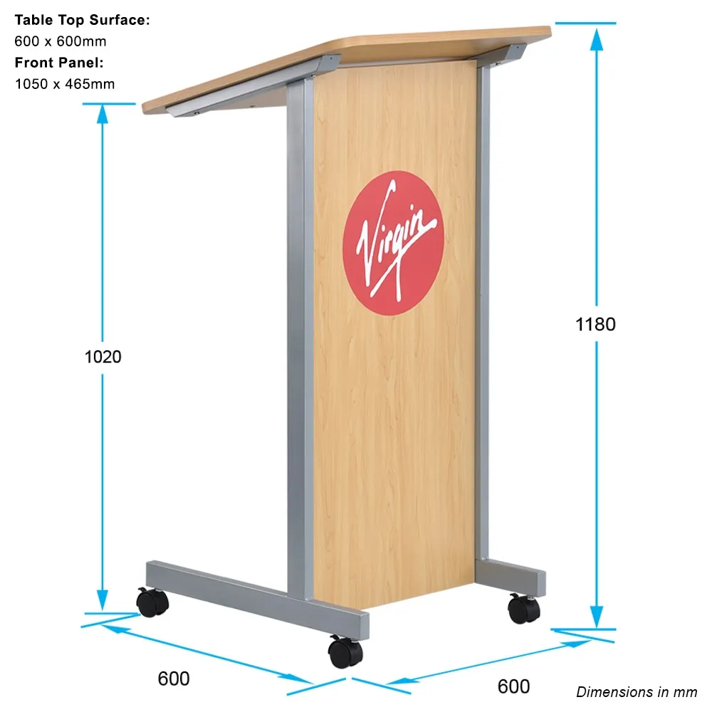 • Movable lectern features custom printed & cut graphic up to 350 x 550mm in full colour