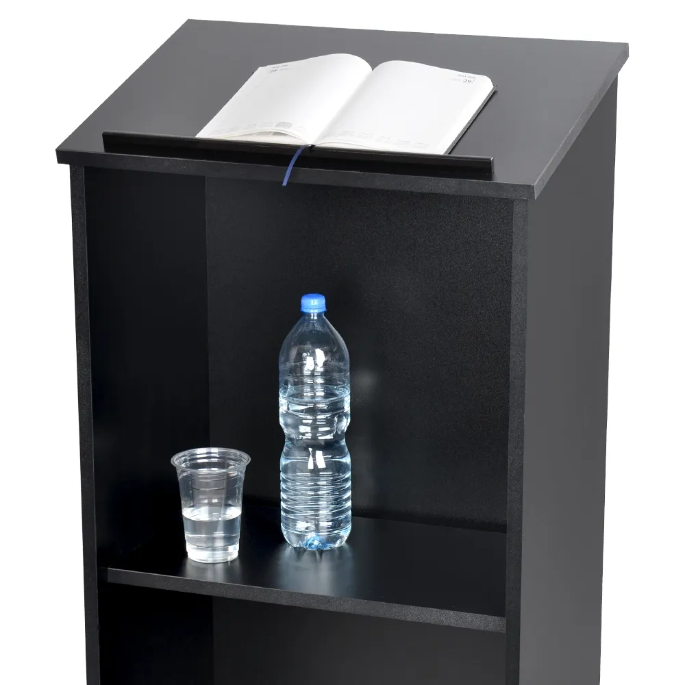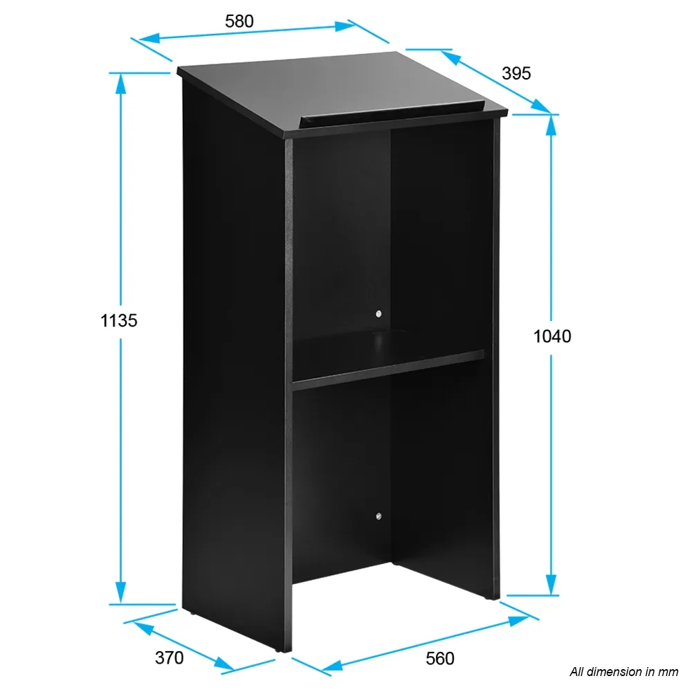 There is a 520 x 298mm interior shelf which is hidden from audience view, making it perfect to keep beverages, personal items and additional presentation materials. At 490mm off the ground, it's easy to reach items without having to bend far down. The MDF design features a black finish to match any décor whilst still offering a durable and affordable display for a variety of budgets. Order today by 3pm AEST to receive same day Australia-wide despatch with this and most other in stock products, only from Slimline Warehouse!