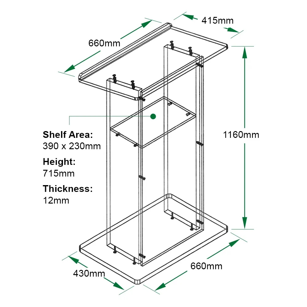 - Lecture stand is premium quality display with 12mm thick clear acrylic panel on front
