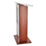 - Shelf inside lectern holds presenter beverages or additional presentation materials