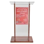 This lecture stand is a premium quality display, combining clear acrylic with beautiful wood for a truly striking appearance. The 12mm thick clear polished acrylic offers the visual appeal of glass at a lower cost, weight, and with better durability. This style of custom podium is popularly used at churches, universities, conference centres, and offices.