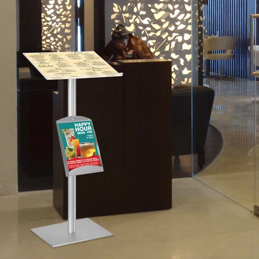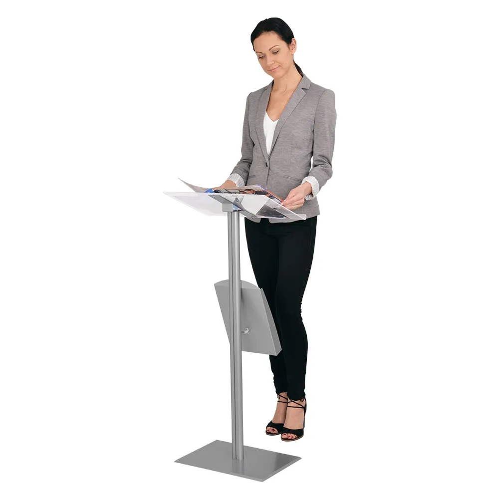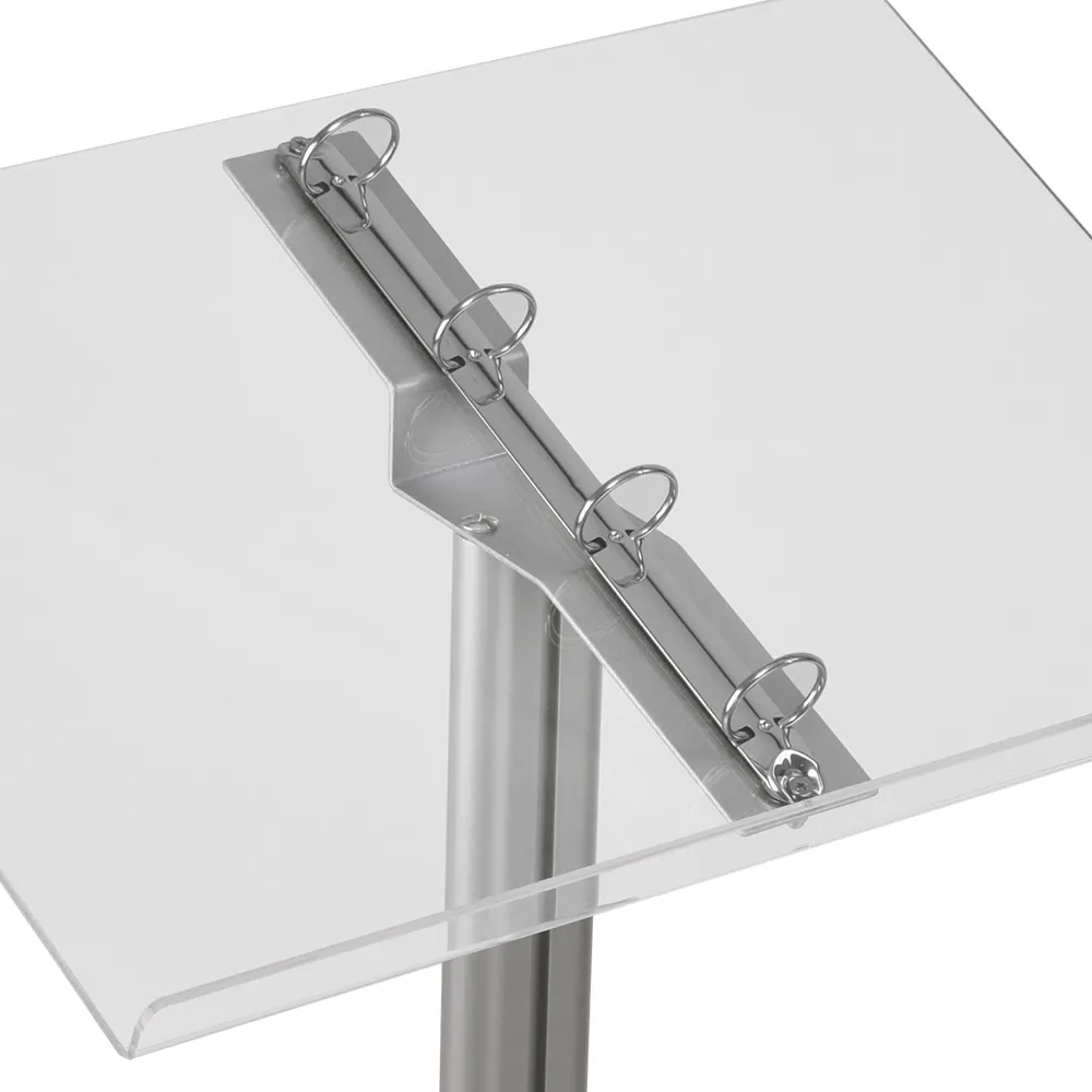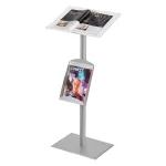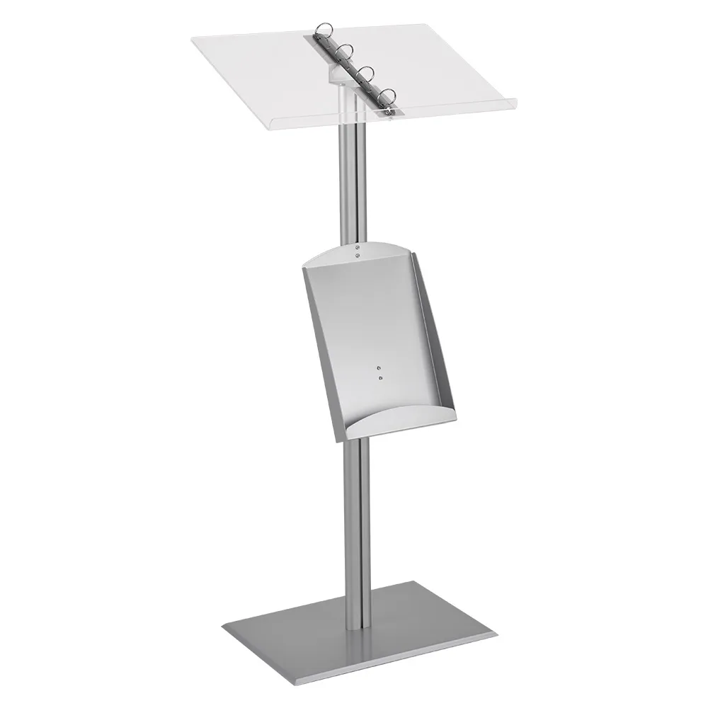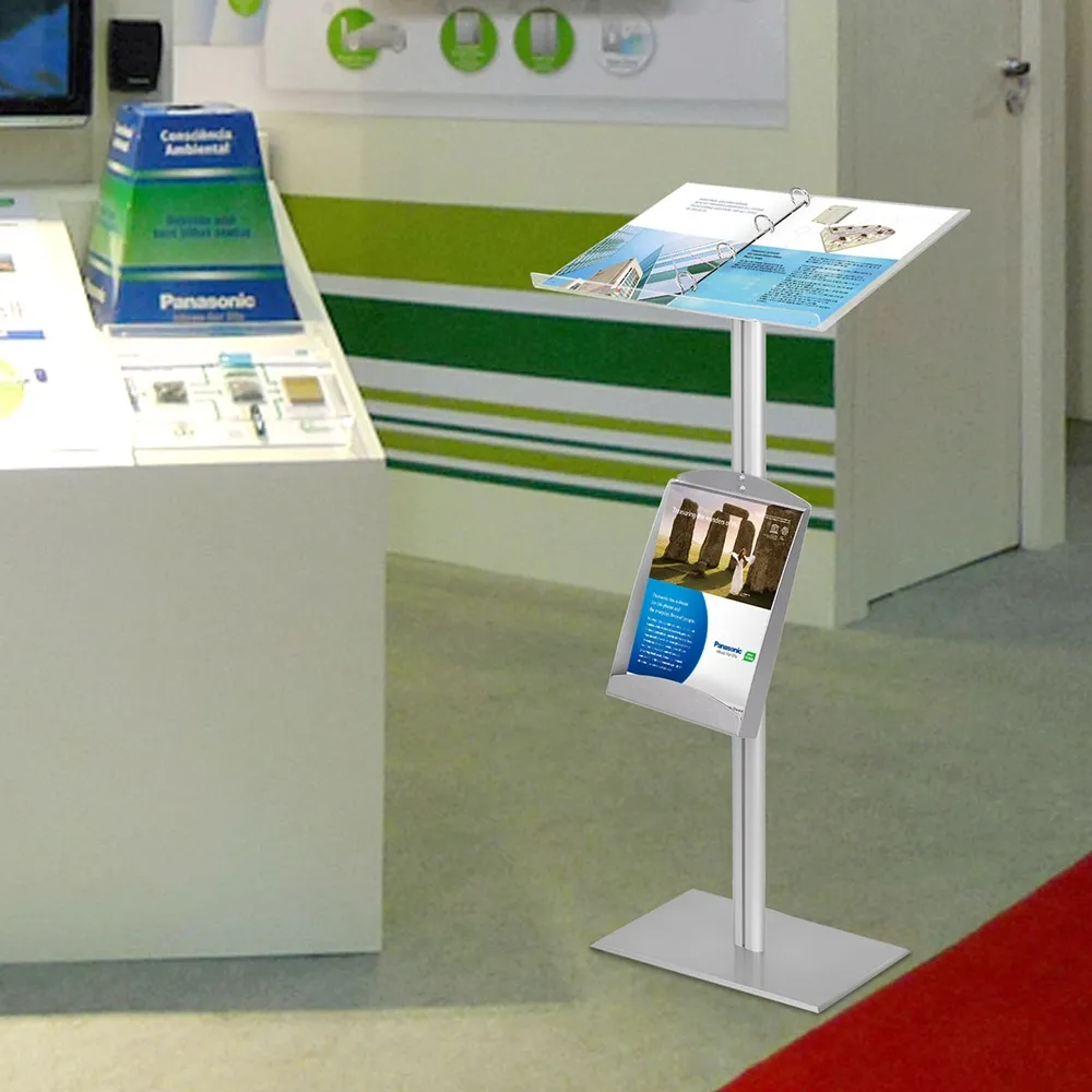 - Large lectern top includes (4) ring binder to securely hold A4 graphics