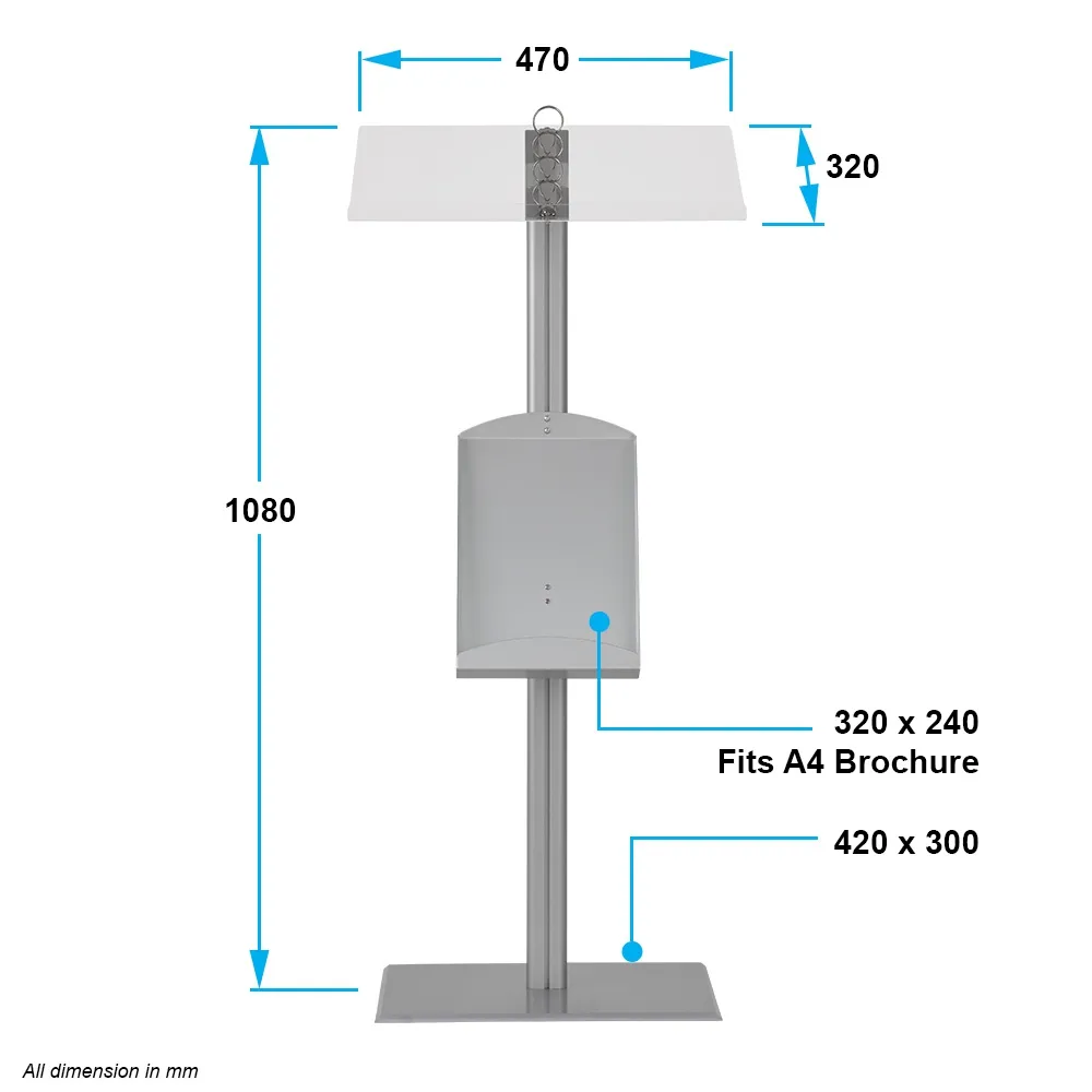 | Brochure Capacity | Holds up to 200 single leaf 100 gsm sheets |