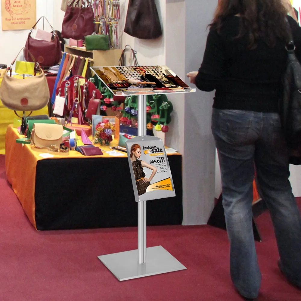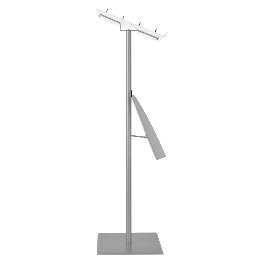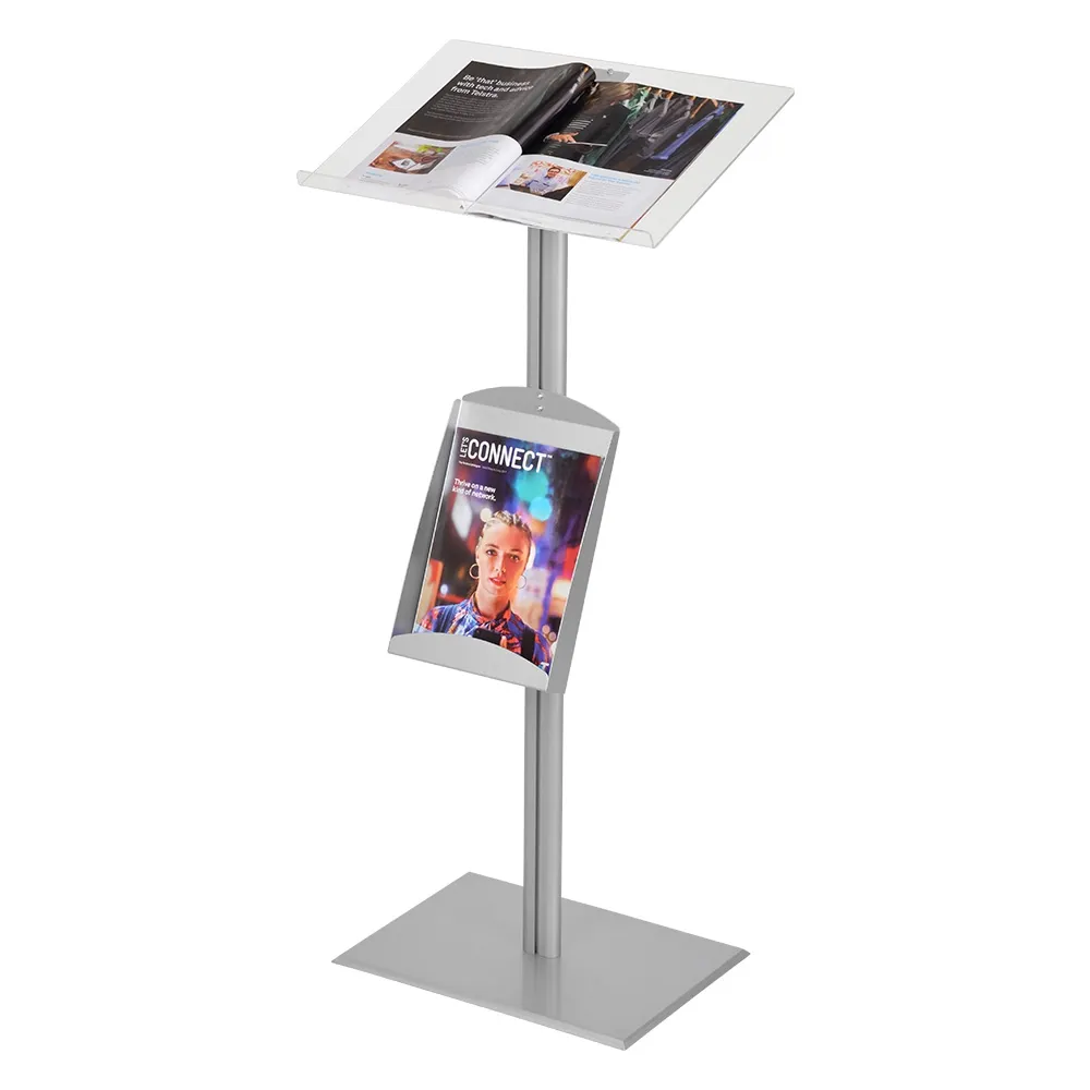 This binder stand display is a multi-purpose display, combining an array of components that help you to effectively provide information to visitors in a variety of locations. The floor standing display includes a large 470 x 325mm lectern top that can be used to hold presentation materials as well as brochures. There is a four ring binder accessory included as well that can be securely installed into the lectern top, perfect for placing information for visitors to flip through. The bottom of the lectern top has a raised edge to ensure materials remain in place.