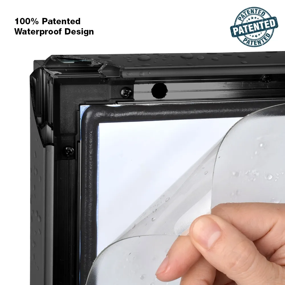- Rubber gasket in frame helps keep electronics & posters dry, with an IP55 rating