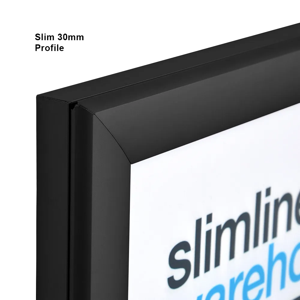 This lightbox for posters is made from aluminium with a black finish, a sleek design that helps focus attention onto the displayed graphics. The slim profile of the light box, only 30mm, fits in well with all environments without interfering with walking paths. Installation hardware is included with purchase for use with most surfaces. A 2.3m long power supply is provided as well to easily reach outlets. The outdoor lightbox has an IP67 rating for safe outdoor use. Slimline Warehouse provides same day shipping to anywhere in Australia with this and most other in stock products when purchased by 3pm AEST, buy online today!