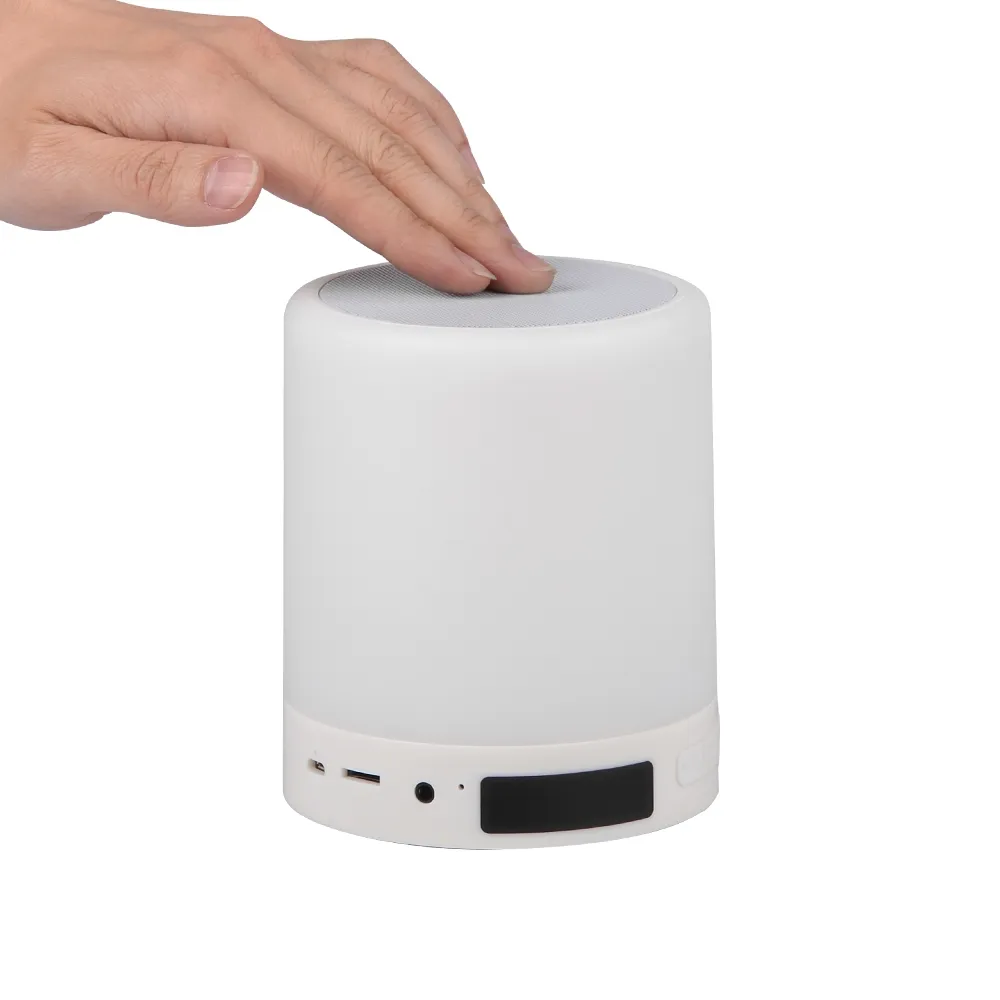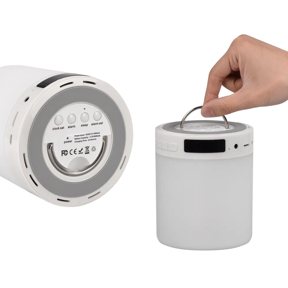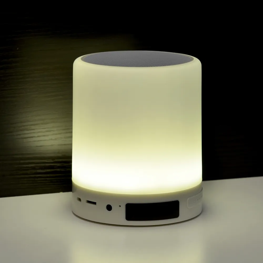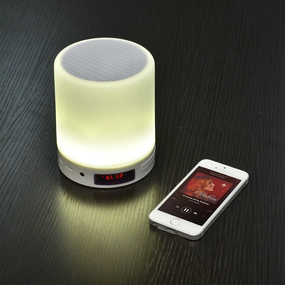 • Smart lamp speaker is 3-in-1 device combining alarm clock, speaker, & LED light!