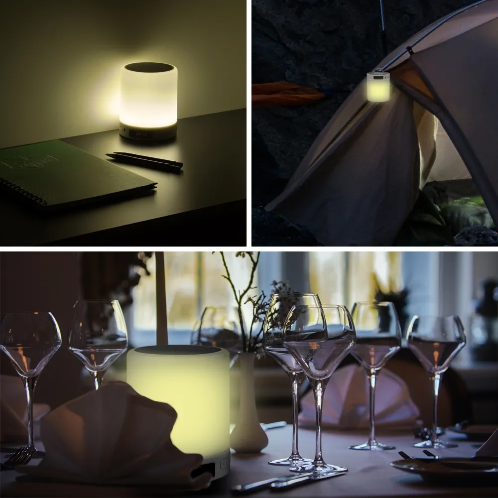 The smart lamp speaker, like an LED bluetooth speaker, can also have audio played from a MicroSD or TF card, and even connect using a cable with a 3.5mm jack. There is also a built-in FM stereo to play standard over the air radio. Aside from the audio capabilities, this device also has a dimmable LED light to illuminate an area to your desired brightness. The 3 different settings are changed by simply touching the top of the speaker. The touch speaker is a cool feature in an already impressive device that impresses wherever it is used!