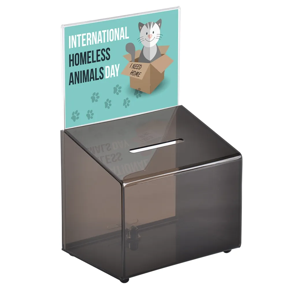 Donation box displays include various sizes & styles, making it simple for different locations to find a suitable display that will work great for their needs. Our vast selection of different acrylic displays offer an easy way to find inexpensive, quality units that serve a variety of purposes in order to best help our customers.