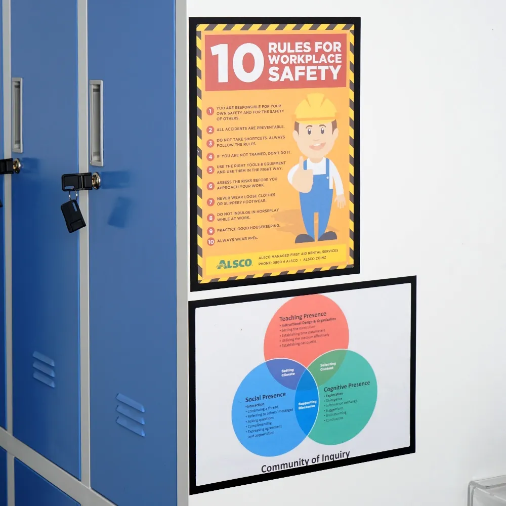 - Magnetic poster pocket displays A4 (210 x 297mm) signage in portrait or landscape