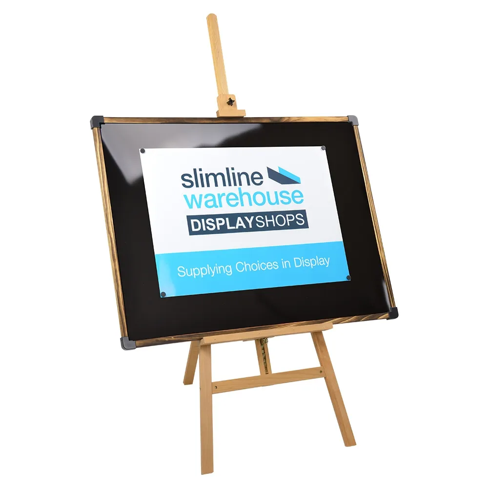 - Blackboard & easel has a large 1200 x 900mm magnetic markerboard with timber frame