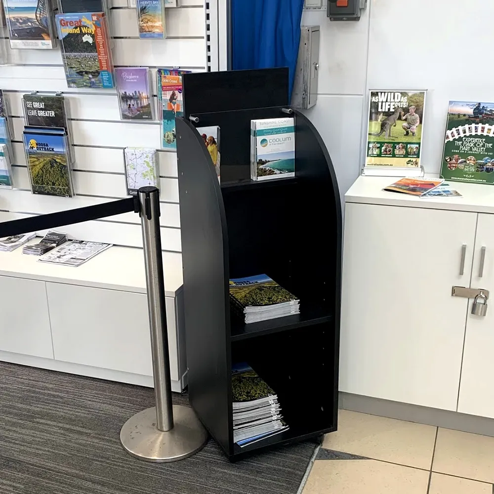 This 1340mm tall stand is made from MDF to provide a durable display at a cost-effective price. The black laminated finish looks great within any location and matches any décor, with the 410 x 435mm footprint taking up little space whilst offering so much room. Assembly is easy with only simple tools required for fast set-up. Whether using this display at a newsagent for selling magazines or within a retail store for effectively positioning bulk product for sales. Order by 3pm AEST for same day Australia-wide despatch when in stock!