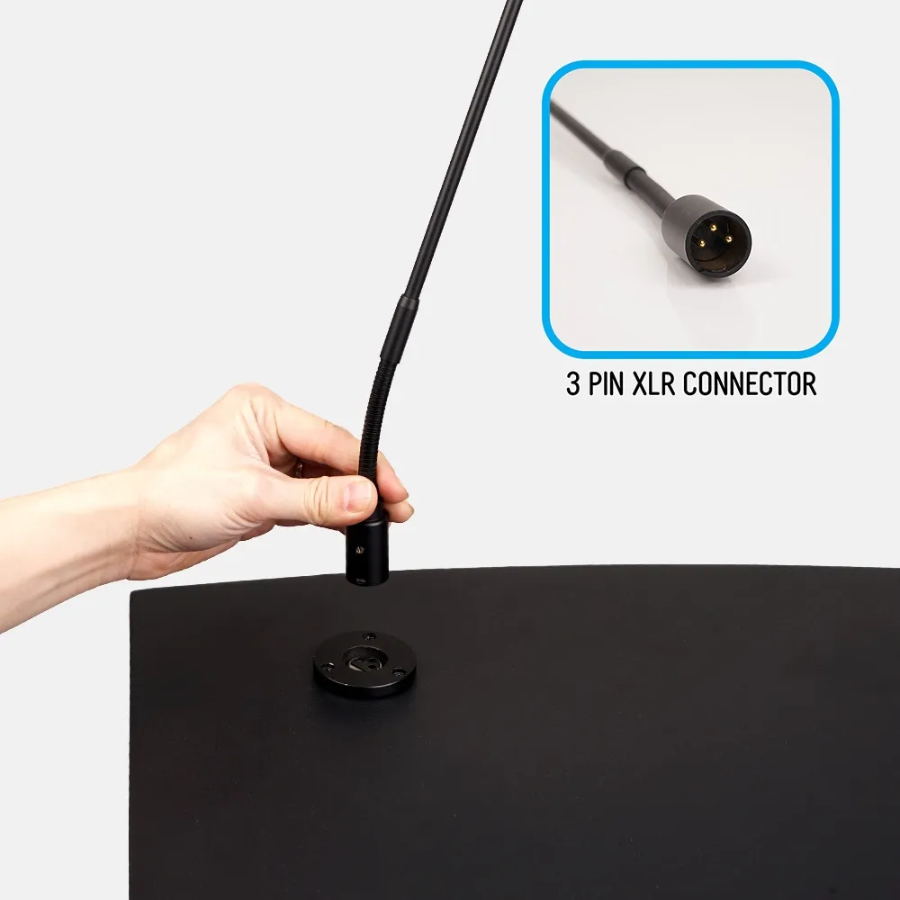 This replacement microphone is compatible with our LCD digital display lectern that has a 43" screen and built-in speakers. It is lightweight and flexible, allowing the speaker to adjust the height and position to suit their use.