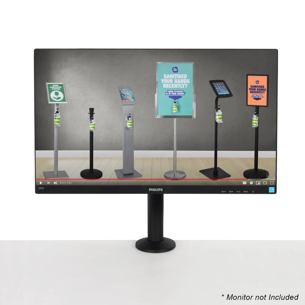 This desktop screen holder, clamp monitor mount helps turn any tabletop into a work area in seconds! The simple clamp design attaches the stand to tables up to 40mm in thickness, with the hand turned knob securing to the counter ensuring stability. The mounting bracket is height adjustable along the stand pole, able to be 290 to 380mm to make it easier to view for people of different heights. The stand is designed to display 15" to 22" flat screen TVs or computer monitors that weigh up to 10kg maximum, easily accommodating most styles & brands of monitors typically used with this style of fixture.