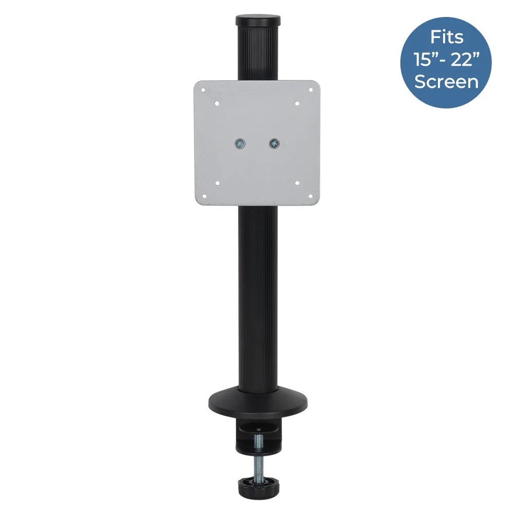 Small Foot Print. Clamp Prevents Screen Being Knocked Over. Holds 15” to 22” Monitors