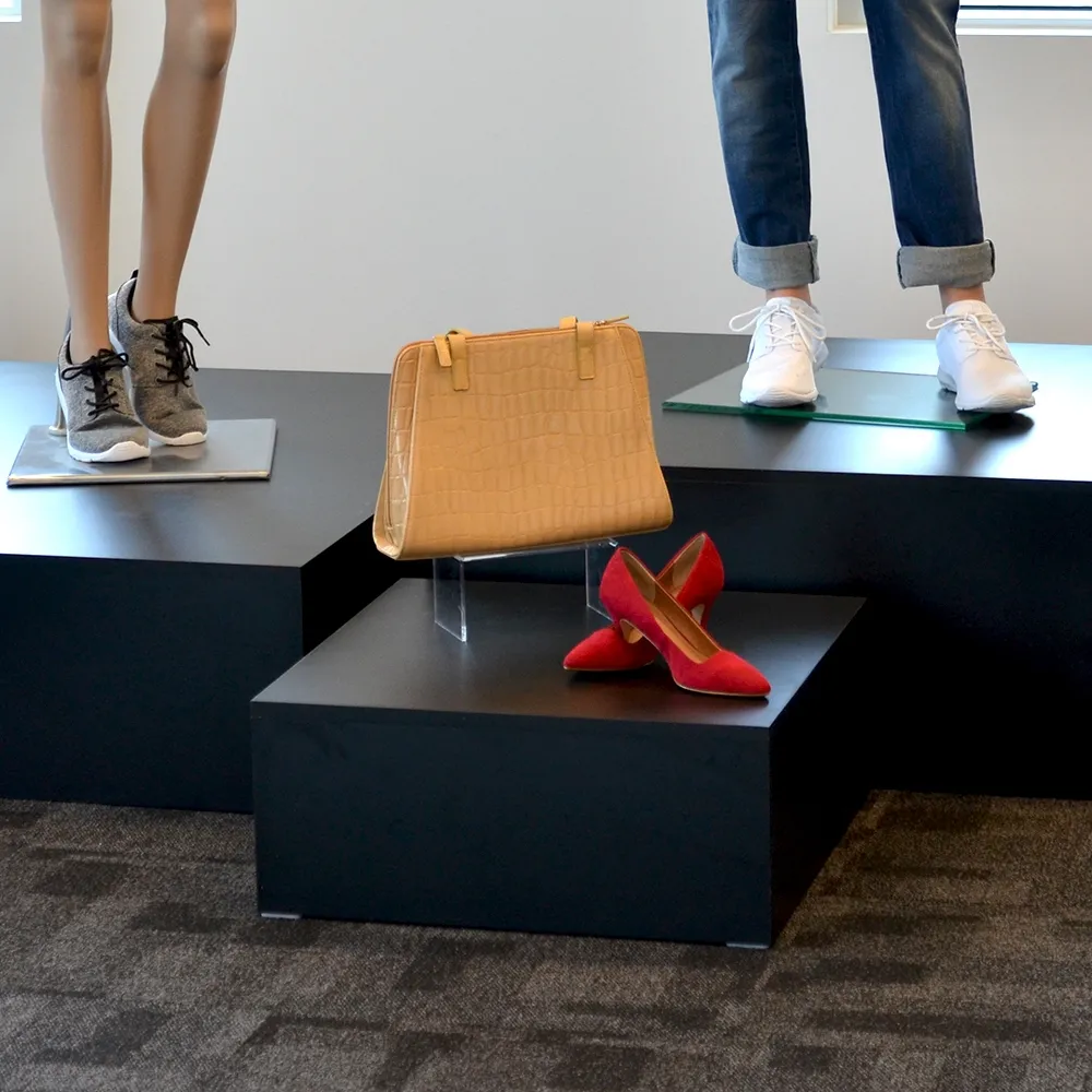 These mannequin risers are great for displaying trendy clothing on mannequins or showcase items to get customers interested in a product range in retail stores, exhibition halls, shopping centres, and more! The display tables raise items off the ground 26cm, helping to draw attention from passersby and better promote items. The top surface area is 60 x 60cm to easily hold mannequin bases for body forms and also other retail items, with a maximum load of 100kg easily supporting most items.