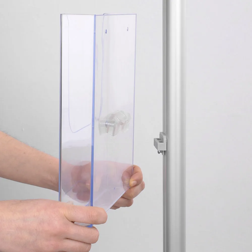 - Acrylic pockets are easily adjusted along centre pole to desired height